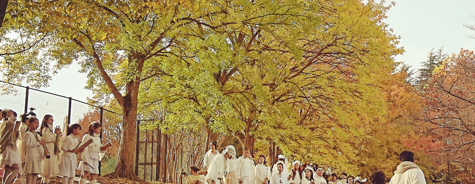 「平和な竹の国“BAMBOOOM”で、竹をめぐり大人たちの争いが始まる。しかし、私欲による争いを戒める長老の言葉に、子どもたちが武器となった竹を遊び道具に変える。すると、大人たちは争いをやめ、最後には信頼の輪でつながっていく」――そんなストーリーを、踊りや歌、竹楽器の演奏などで創り上げました。